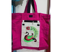 Peacock Fabric Painting On A Fold-Able Wallet Cum Shopping Bag