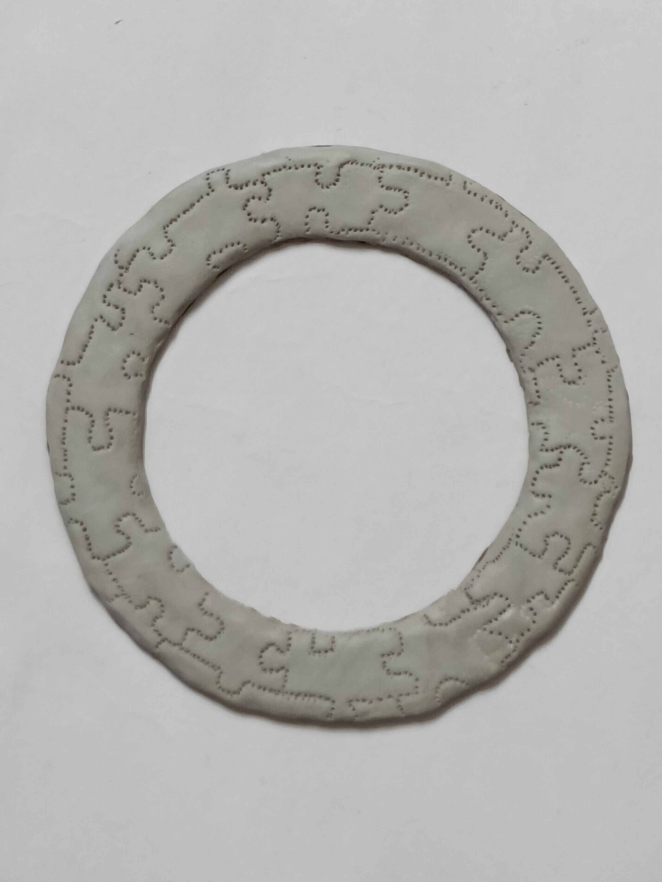 - Engraved the jigsaw puzzle motifs on the ring with clay carving tools.