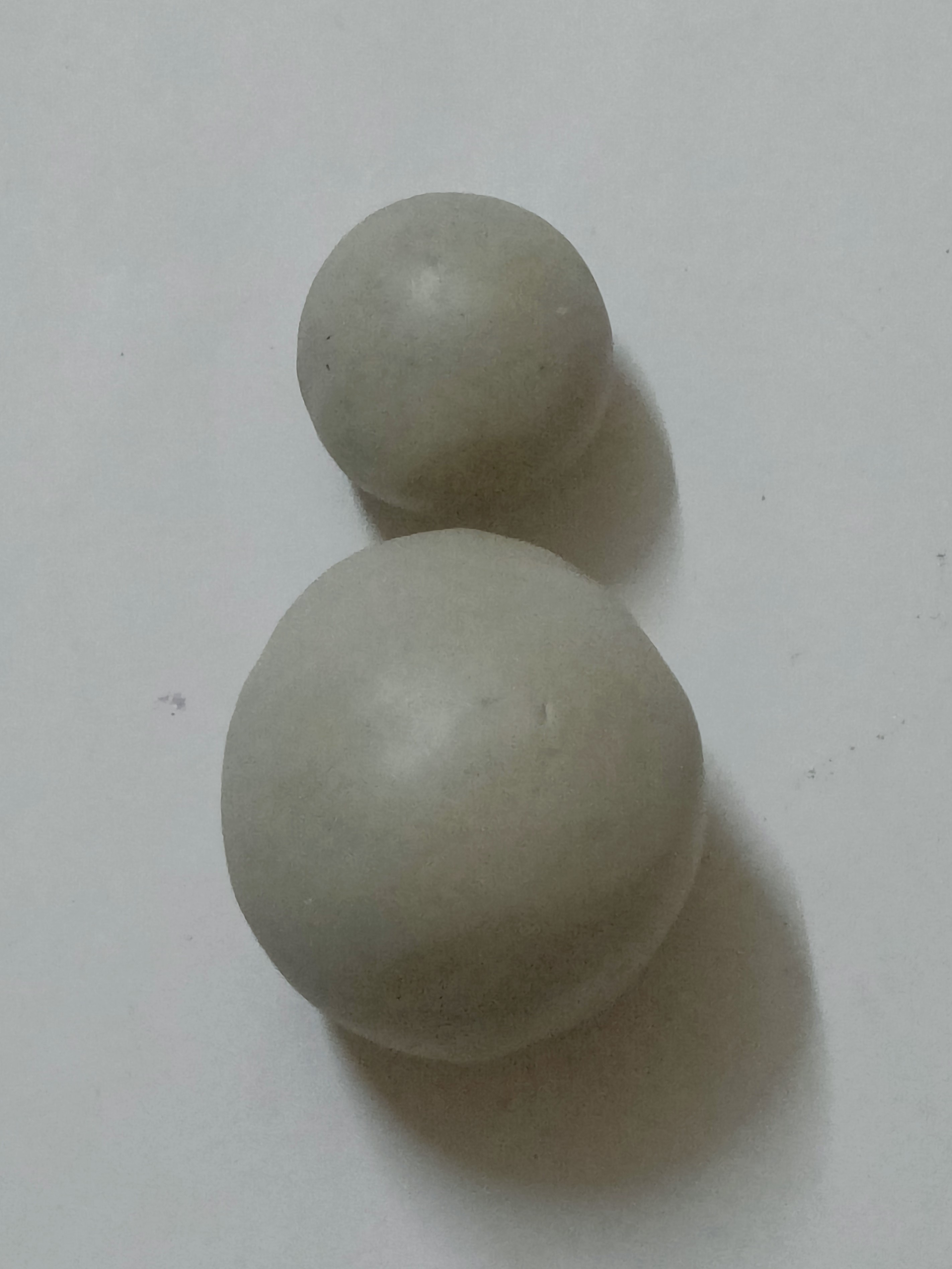 - Take the dough, divide in two parts to make the head and the body of the teddy.