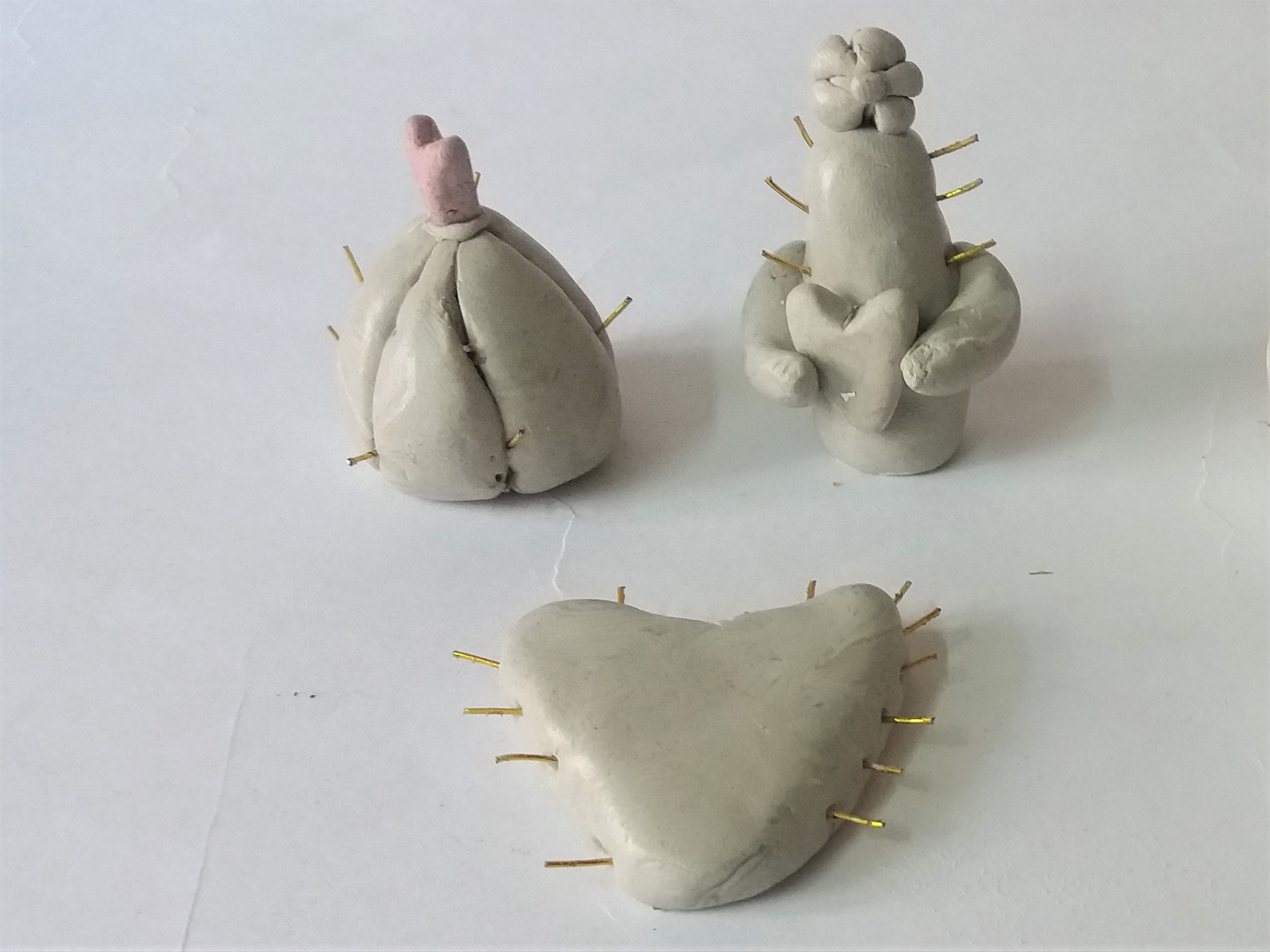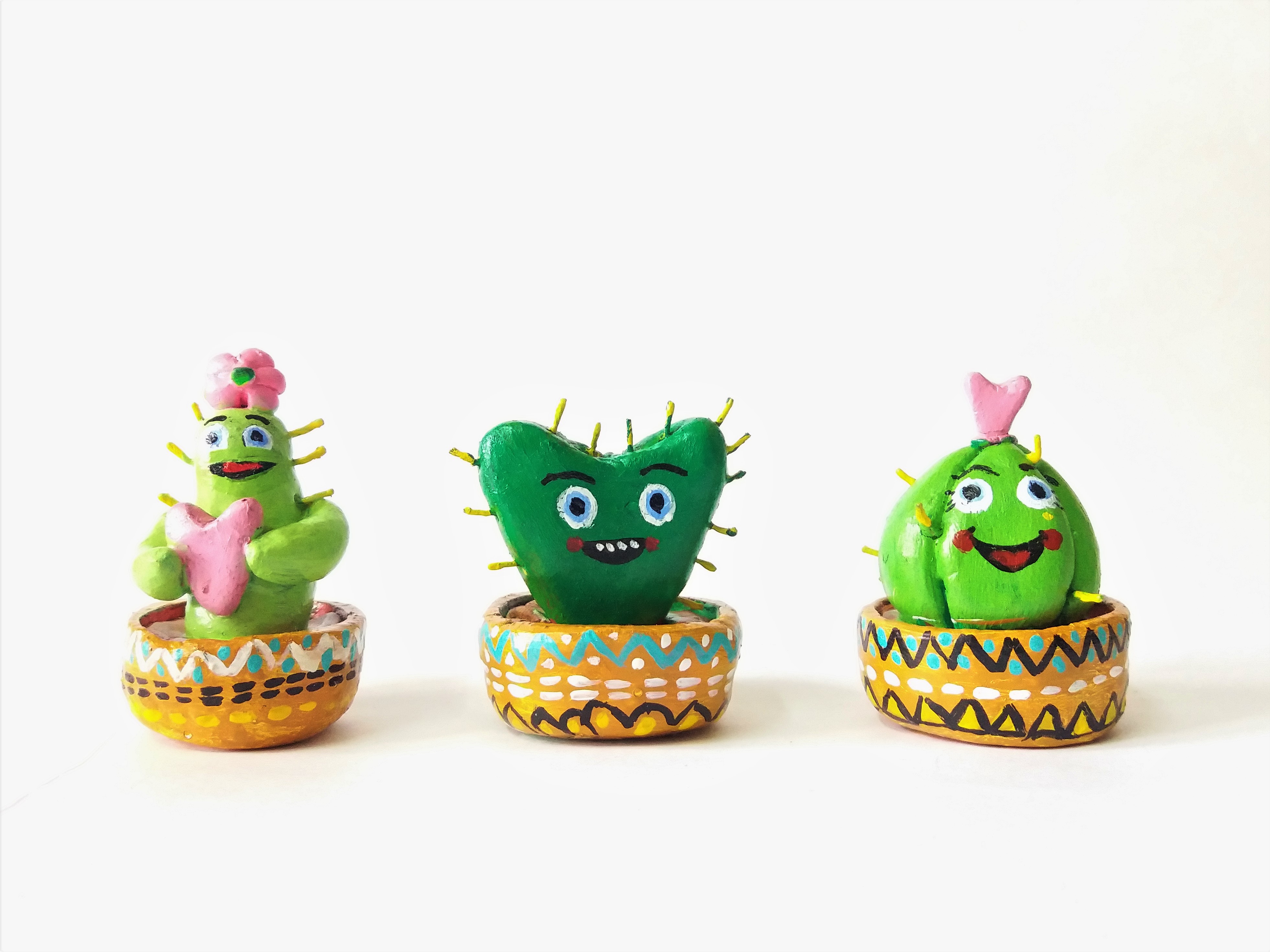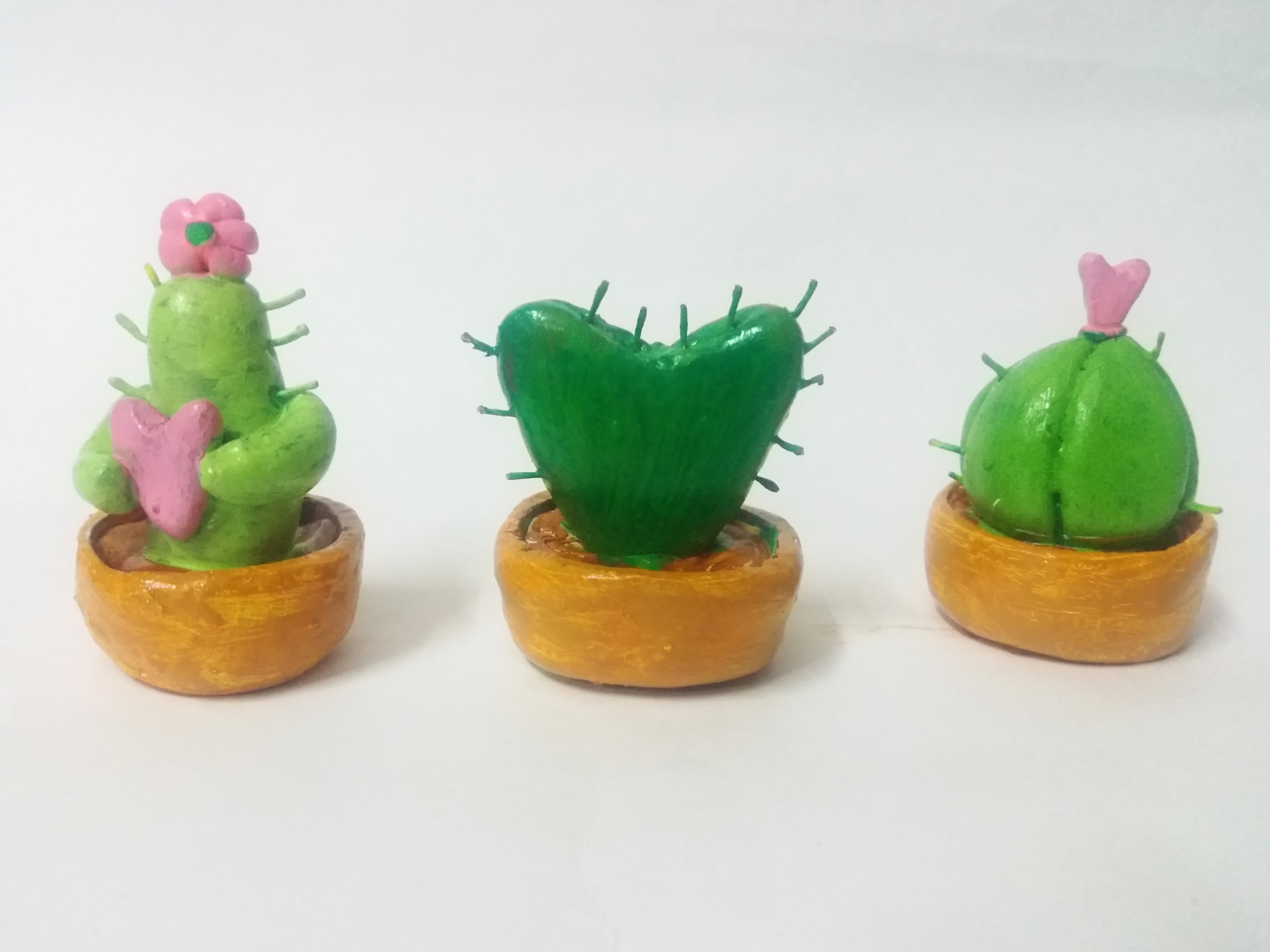 - Take some clay to make the cactus with different type species in the shapes like the heart shape, tall cactus with holding a heart and one cactus with flower on the top with the help of the clay carving tools and Fabric Glue for sticking.