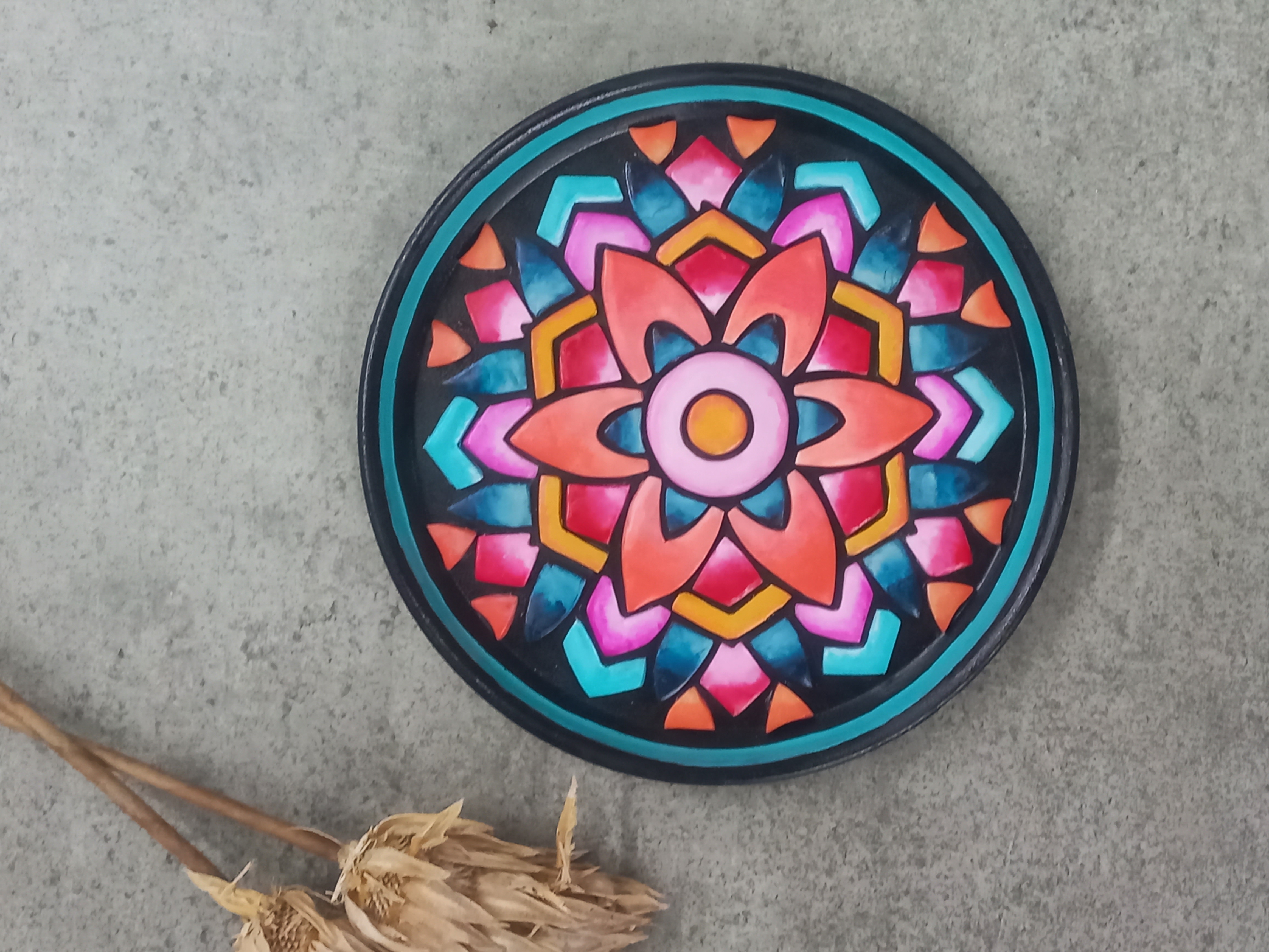 - Your beautifully handcrafted and painted thali is now ready to be displayed as a festive decoration or a unique art piece.