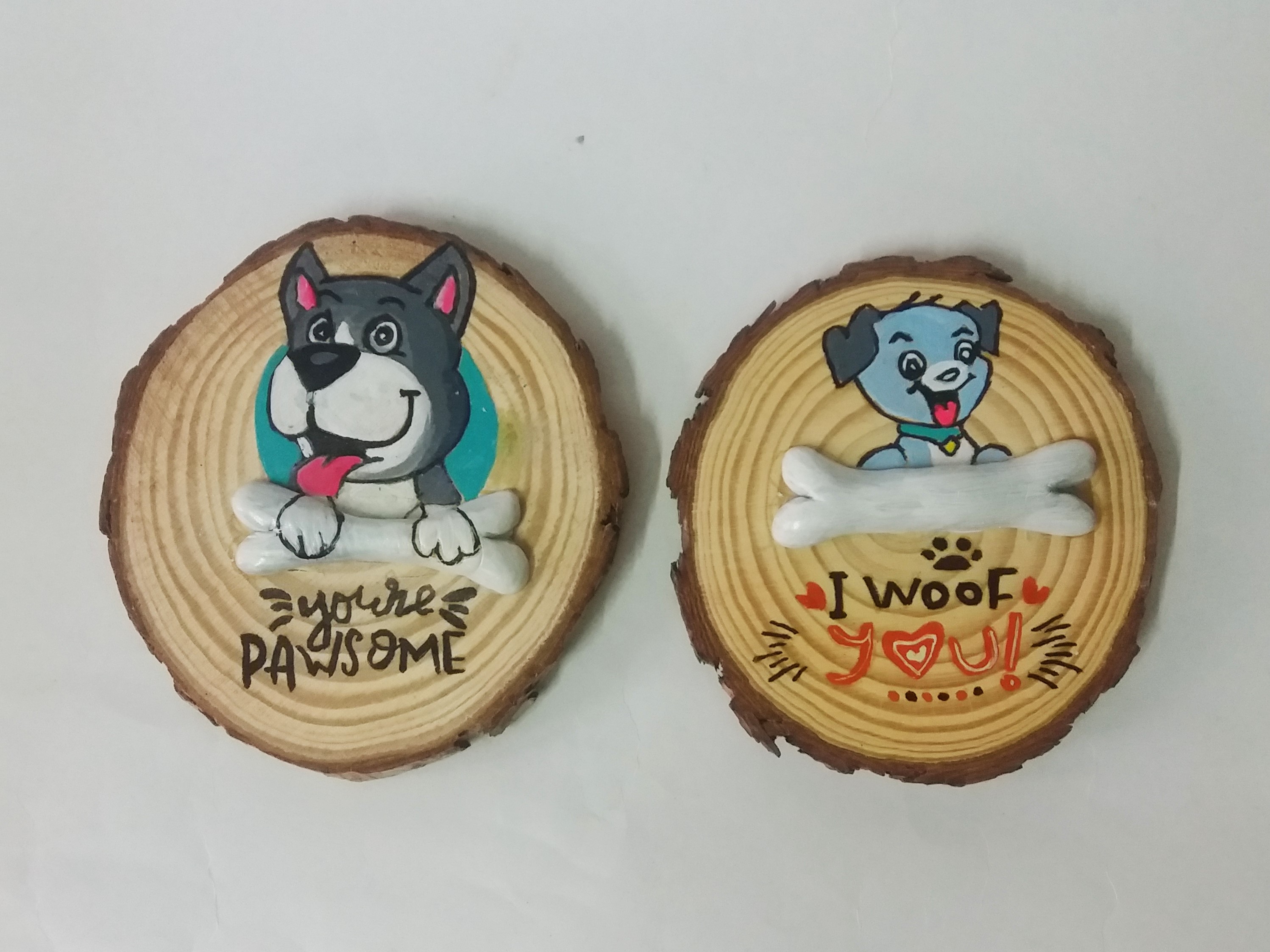- We are going to make the fridge Magnet with dog and bone motifs using the natural wood slice and Mouldit.