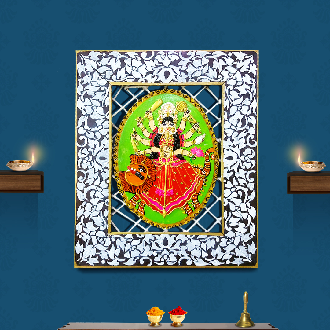Check out the images to see the steps behind creating this beautiful Durga Frame and get set for this Dussehra!