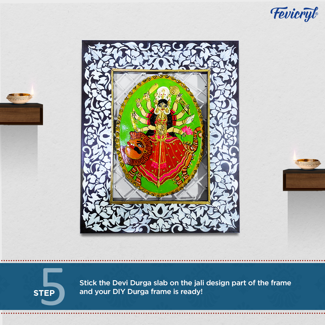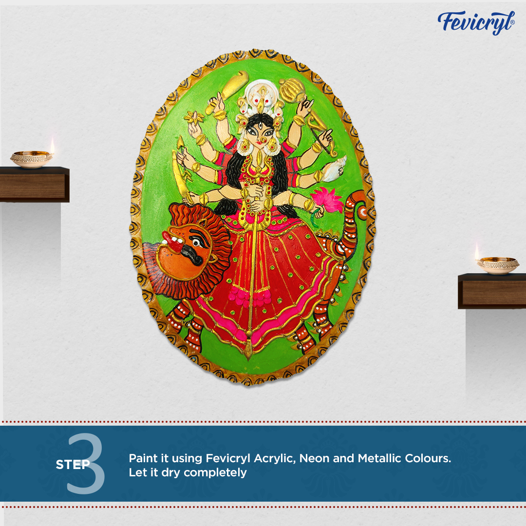 The jali design and intricate details of devi made using Fevicryl Mouldit makes the entire artwork so gorgeous. It’s definitely something you should try out!