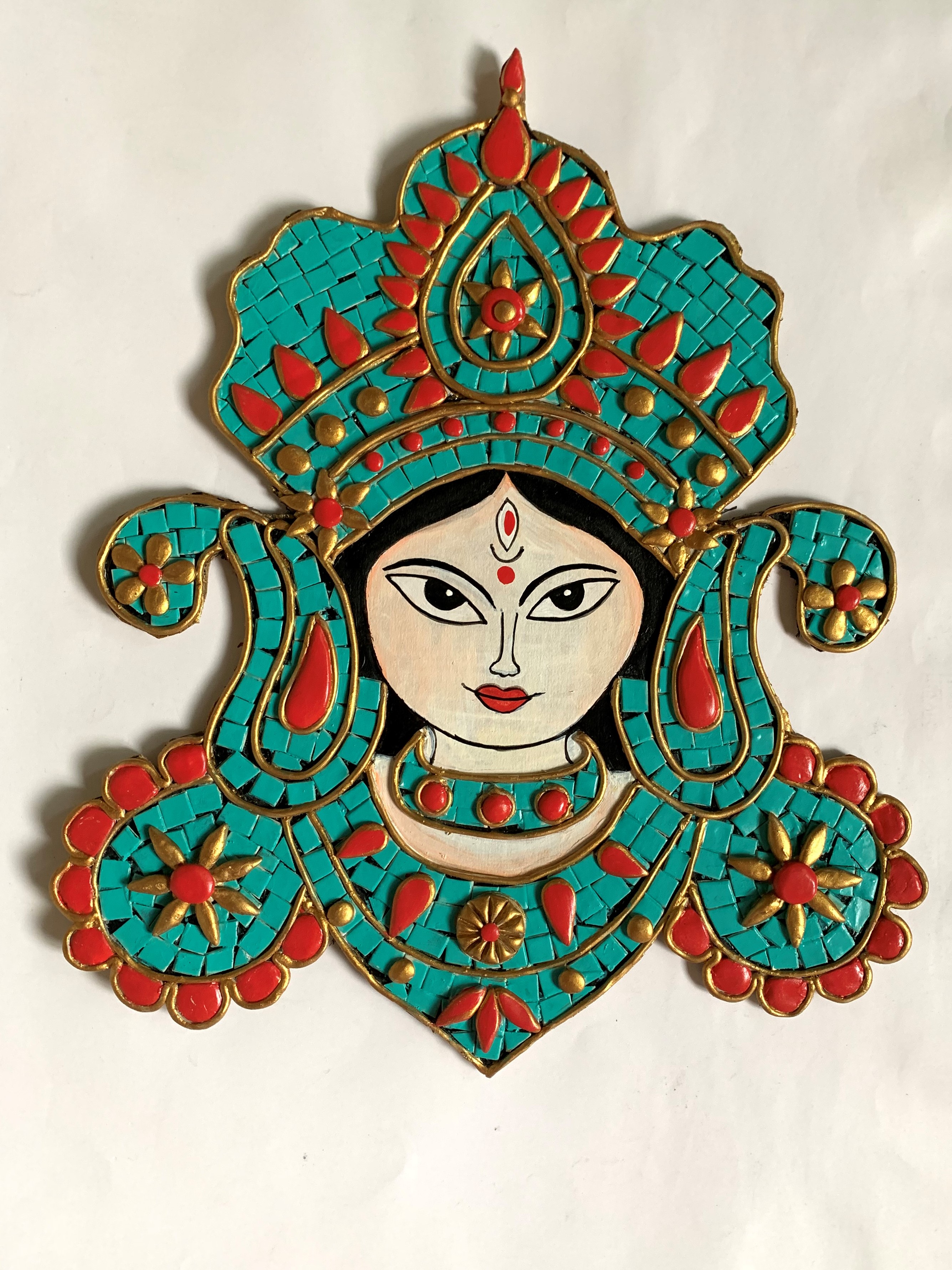 Durga masks are made in plenty traditionally during the Navratris and are found in many households as a part of the décor too. Here is a beautiful twist to the revered art form – Tibetan mosaic. Learn more about this technique here.