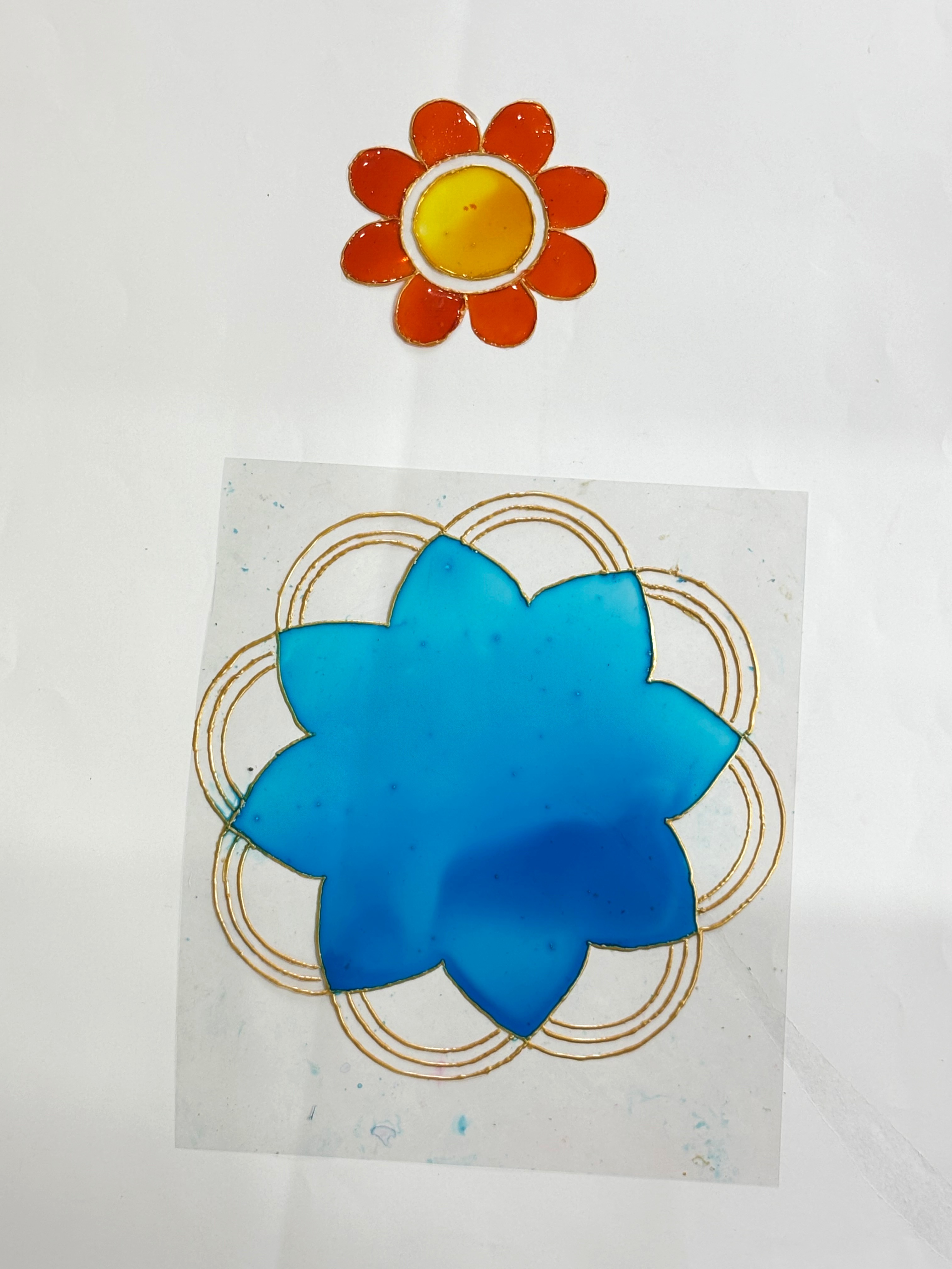 - The colours will spread to fill the space, creating a beautiful stained-glass effect.