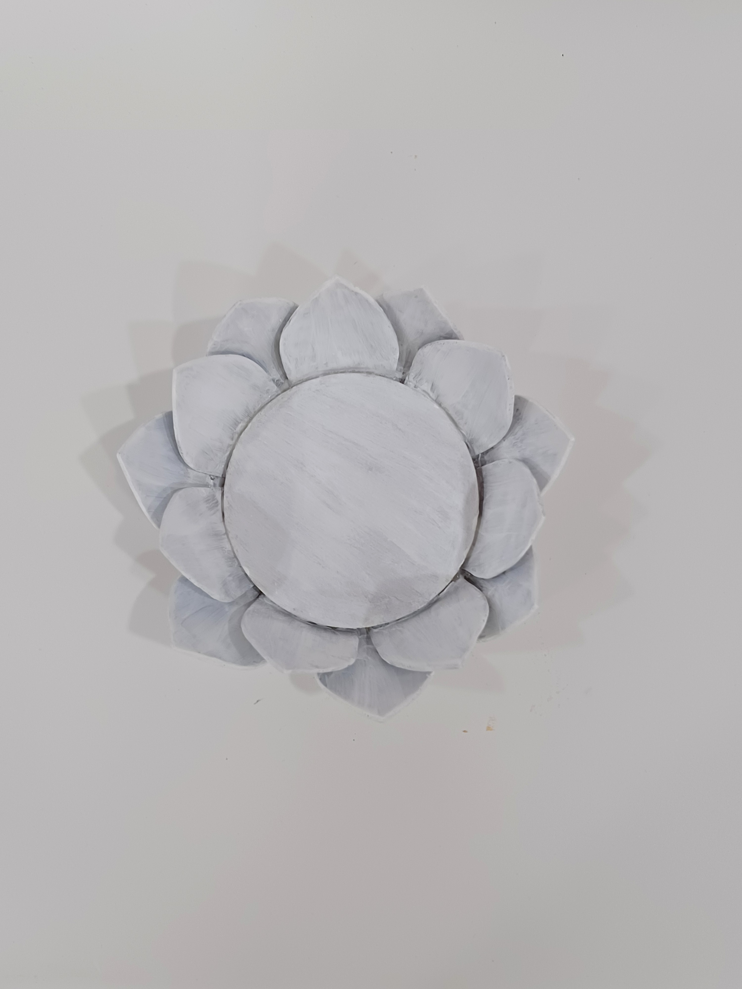 - Once the lotus base is dry, paint the entire base, including the clay petals and the bottom MDF board, with Fevicryl Acrylic Colour White 27.