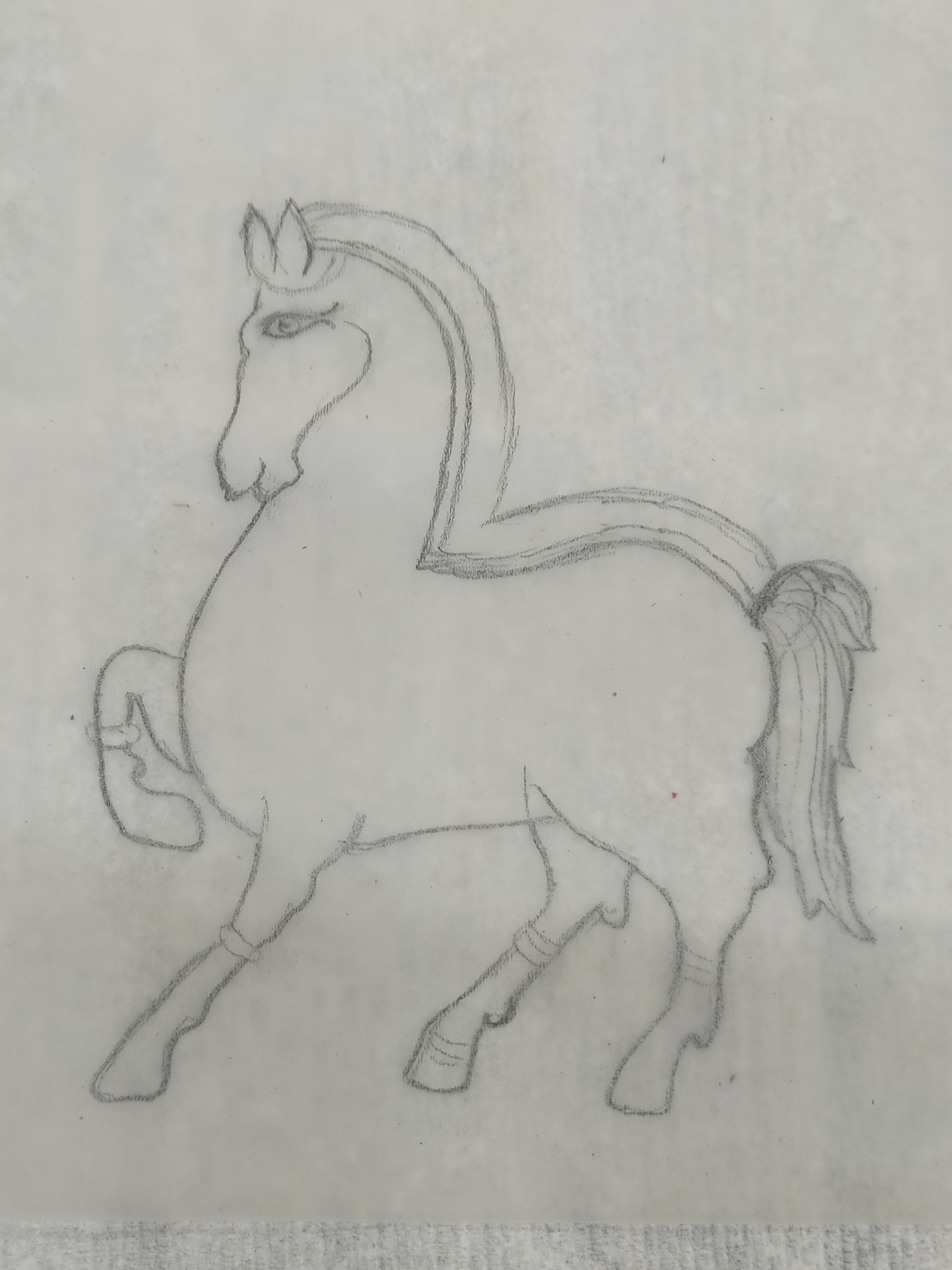 Draw a Kalamkari inspired horse on a sheet of paper.