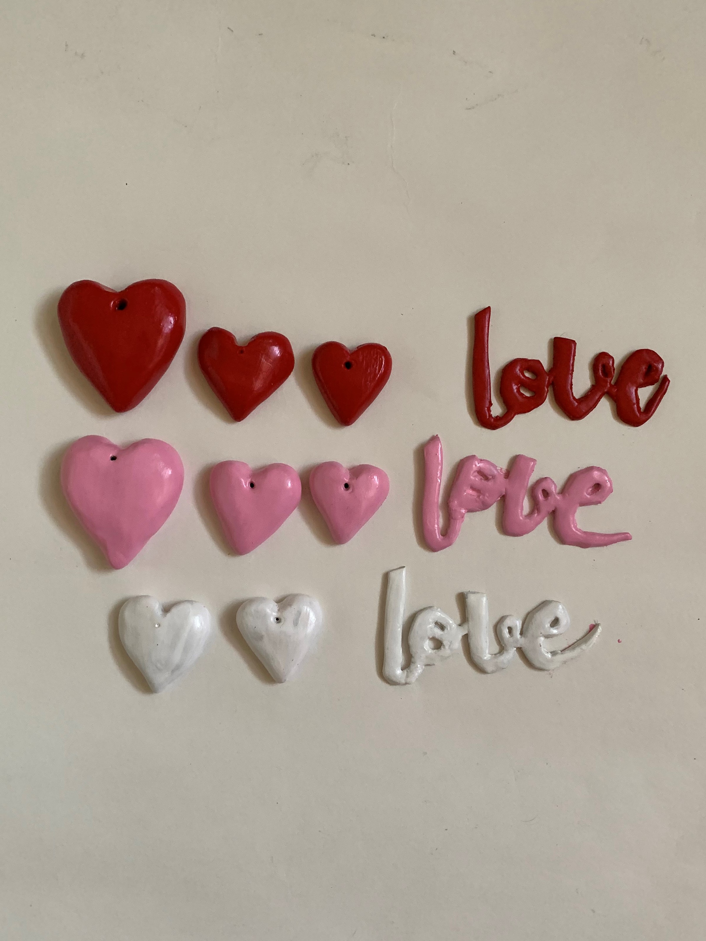 - Paint the word and the hearts with Acrylic Colour Crimson 04 and White 27.