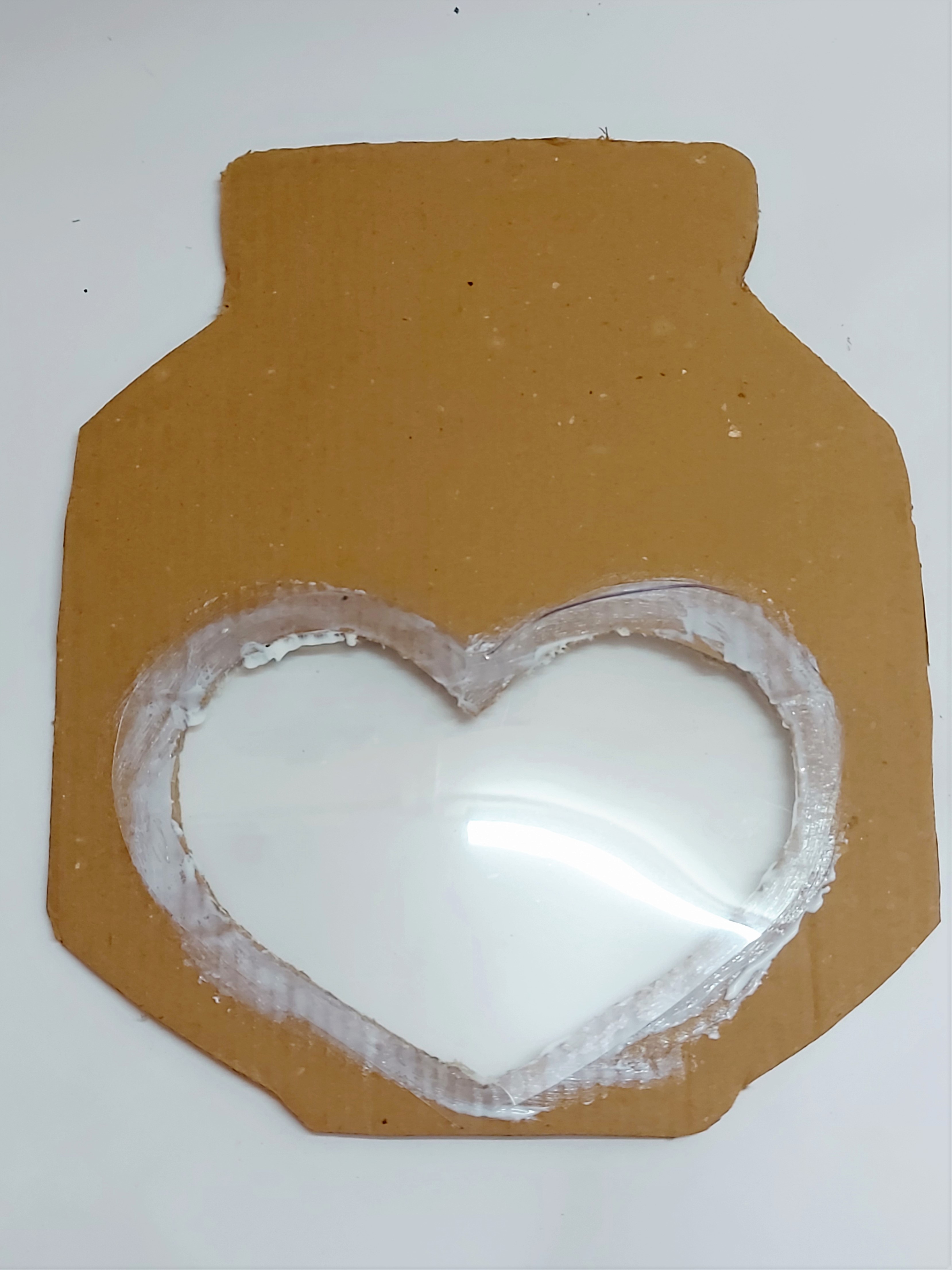 - Draw and cut the shape of the jar with the heart cut out in the centre of the jar like this.