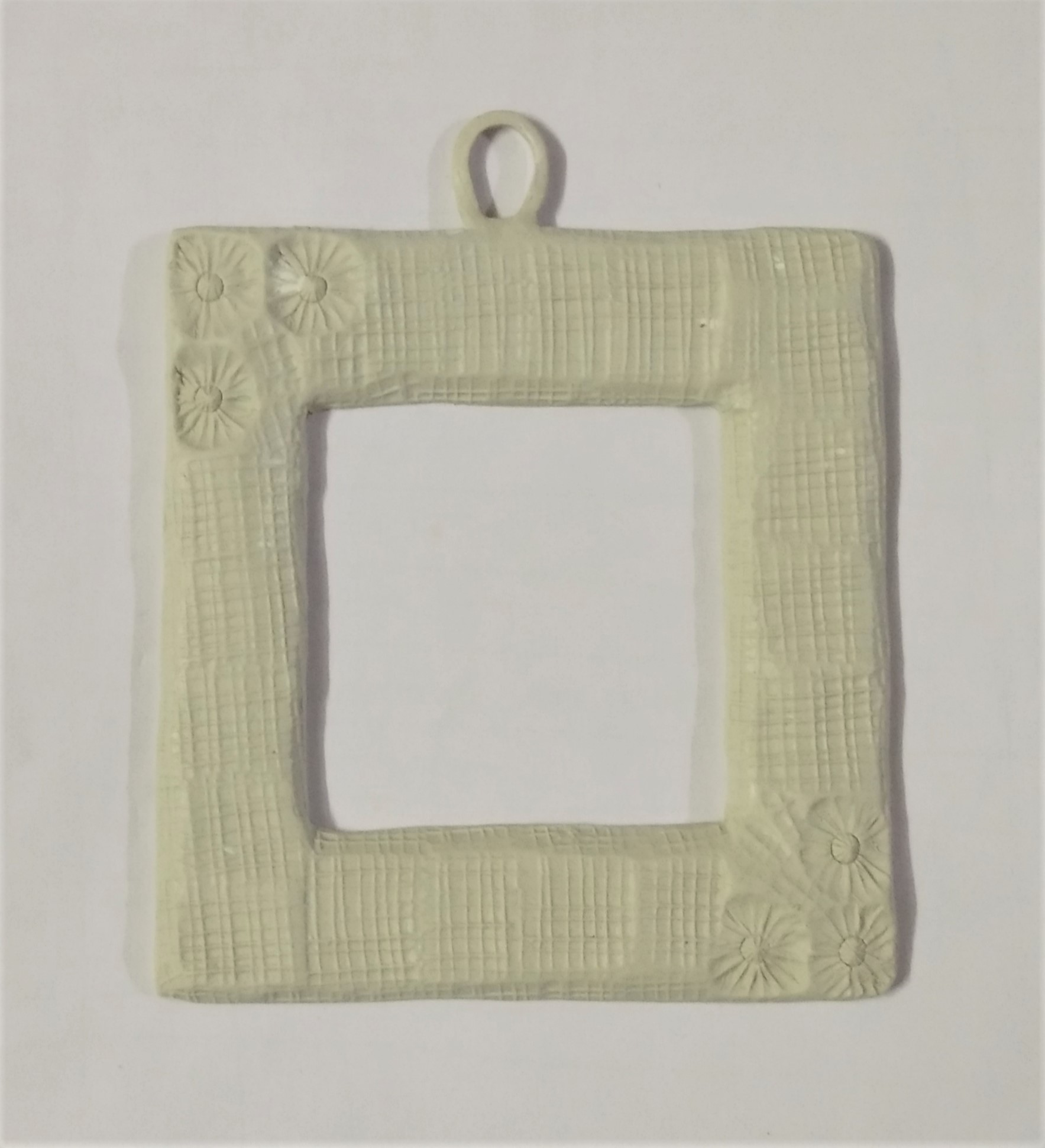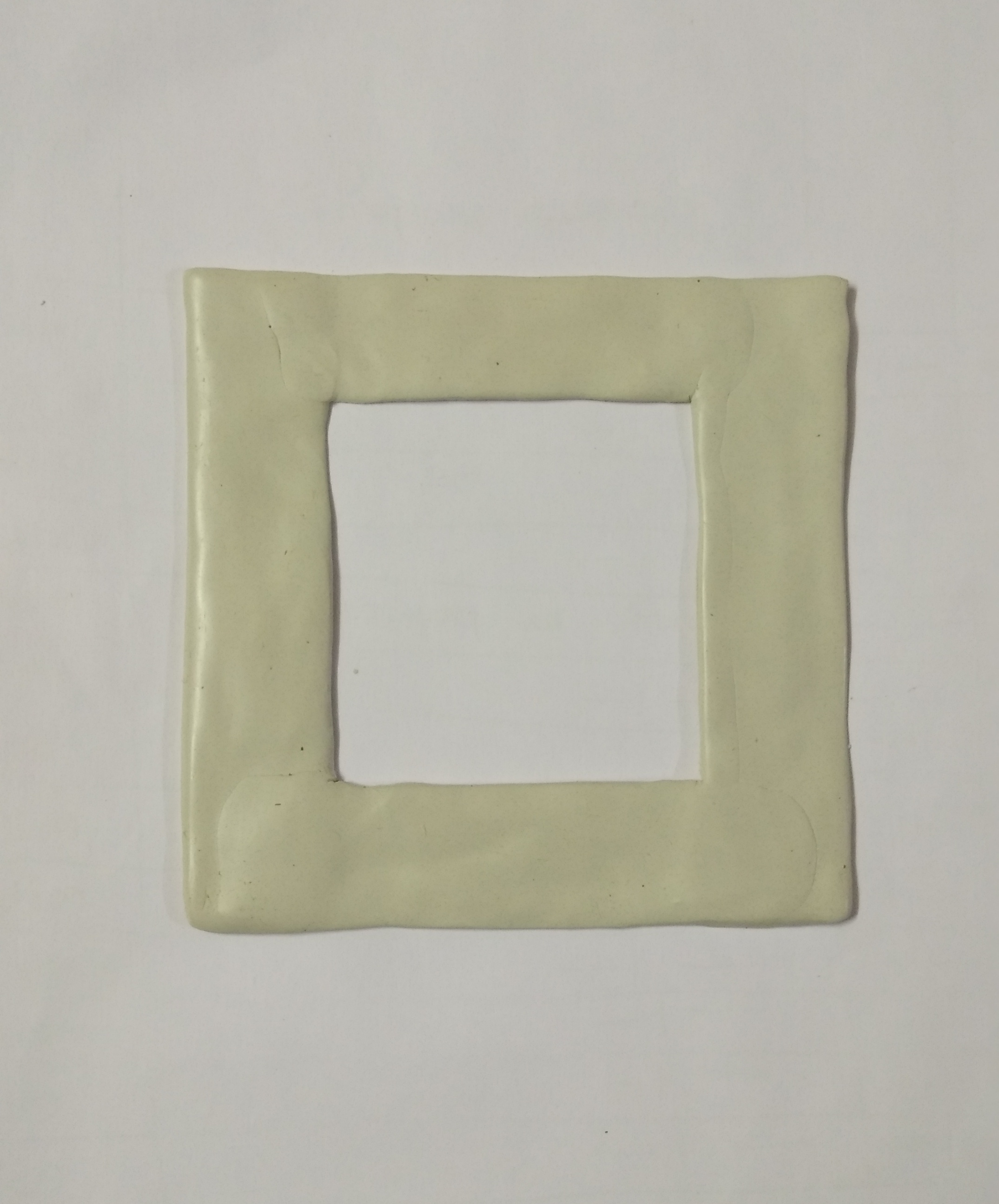 - Mark and cut the other square inside the big one, measuring 2” x 2” in size. Remove the excess clay.