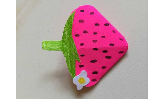 Stick the flower and complete the Strawberry Bookmark with Sketchpen.