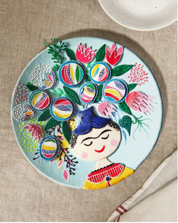Frida Kahlo being our muse here, we have very artistically adapted this theme on a terracotta pan. The little elements surrounding are made with Mouldit and painted with Acrylic shades that are colourful and full of life.