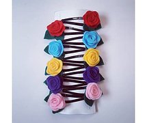 Five Pairs Of Tic Tac Hair Clips With Handmade Roses