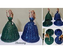 Barbie Doll With Paper Woven Dress And Secret Container