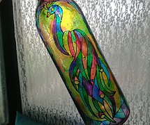 Handpainted Peacock Glass Bottle