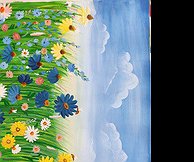Garden Full Of Flowers Under Blue Sky With Clouds