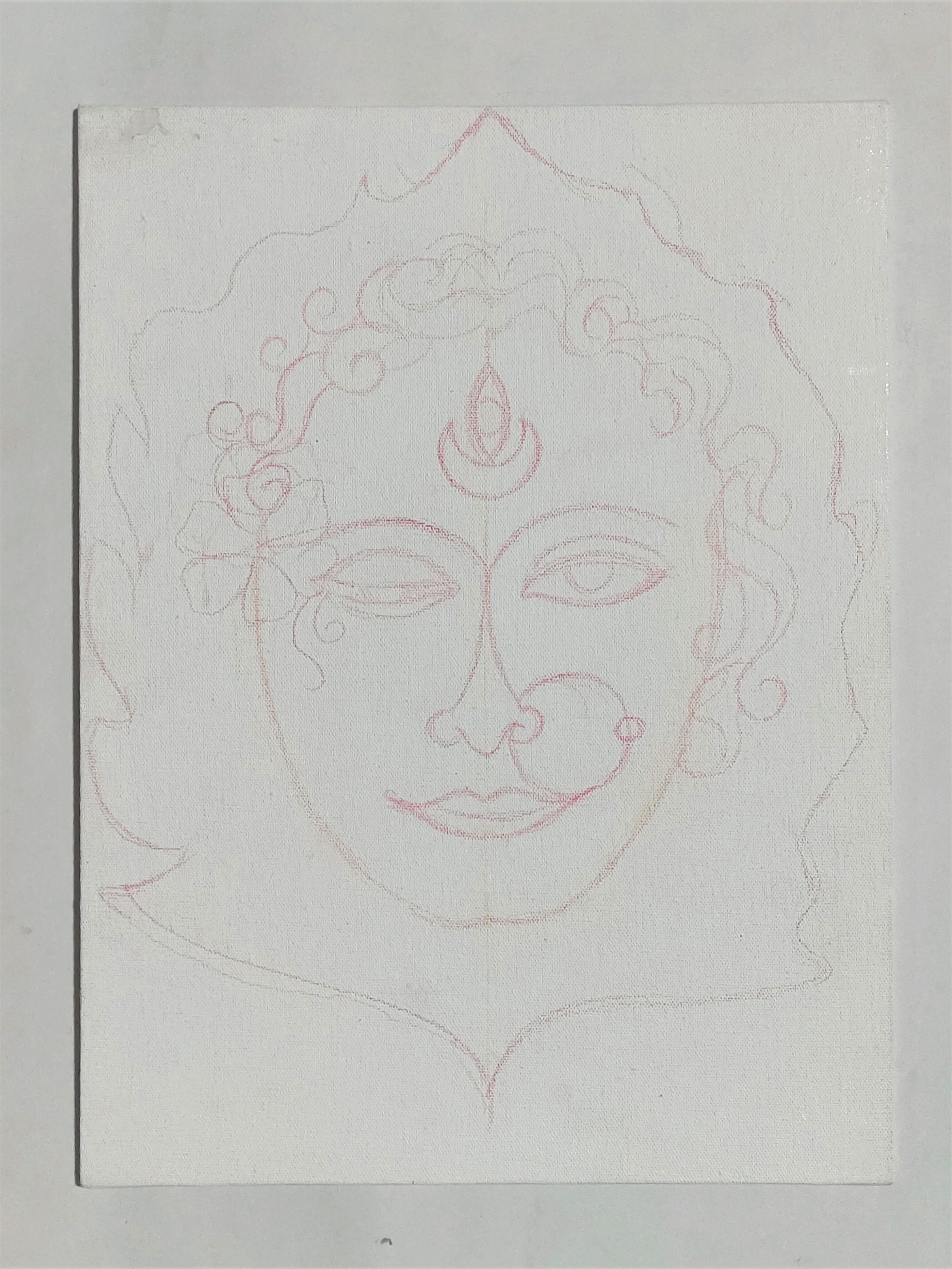 Fevicryl Acrylic Colours Black 02, Chrome Yellow 03, Crimson 04, Golden Yellow 09, Lemon Yellow 11, Orange 17, Prussian Blue 19, Ultramarine Blue 23, White 27, Sky Blue 63, 12” X 16” Fine Art Canvas Board, Fine Art Brushes, A3 White Paper, Yellow Carbon Paper, Pencil, Colour Palette, Water Container