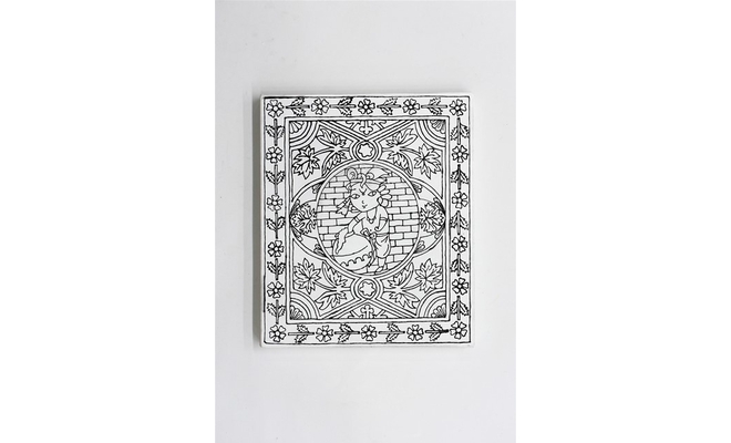 • Paint the design and the Bal Krishna with Water Based Glass Colours Tomato Red 851, Golden Yellow 852, Crystal Green 854, Brown 855, Pink 856, Black 857, Ultramarine Blue 859 And 860.