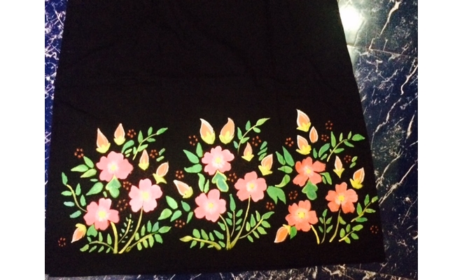 Fevicryl Soft Acrylic Colour Chrome Yellow 203, Orange 217, Pink 218, Light Green 212, Plain Black kurti, Fine Art Brush, Liquid Embroidery Red 701,