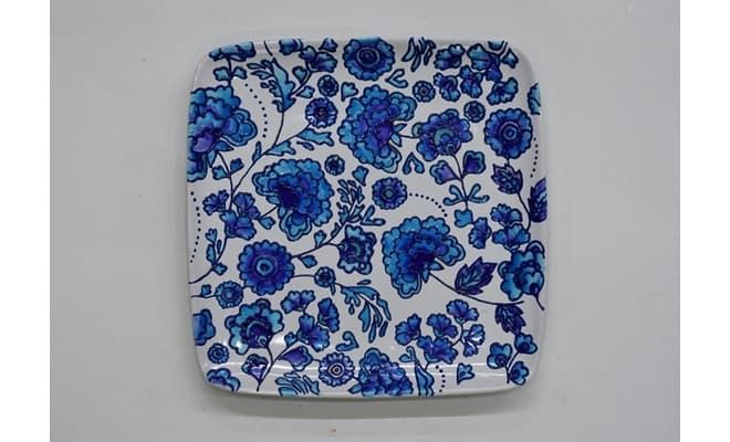 Fevicryl 3D Outliner Blue 702, Fevicryl Water Based Glass Colours (Sea Blue, Ultramarine Blue), Fine Art Brushes, Plain White Ceramic Platter, Pencil, A4 White Paper, Yellow Carbon Paper, Colour Palette, Water Container.