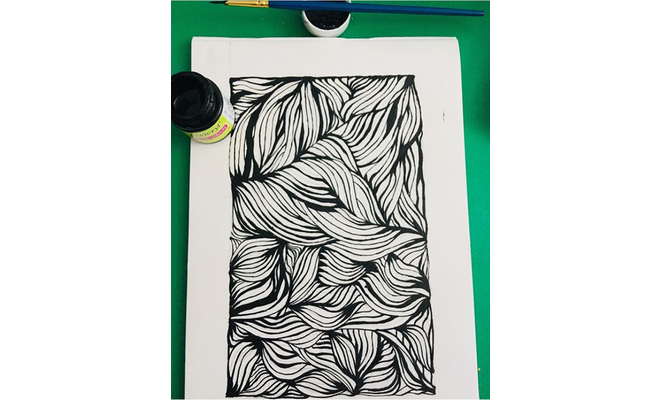 Drawing Sheet, Fevicryl Acrylic Colour Black, Yellow, Green, Orange, Fine Art Brush.