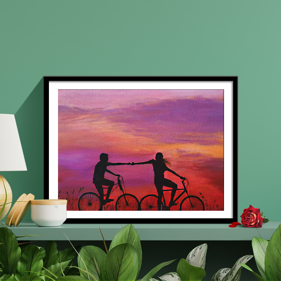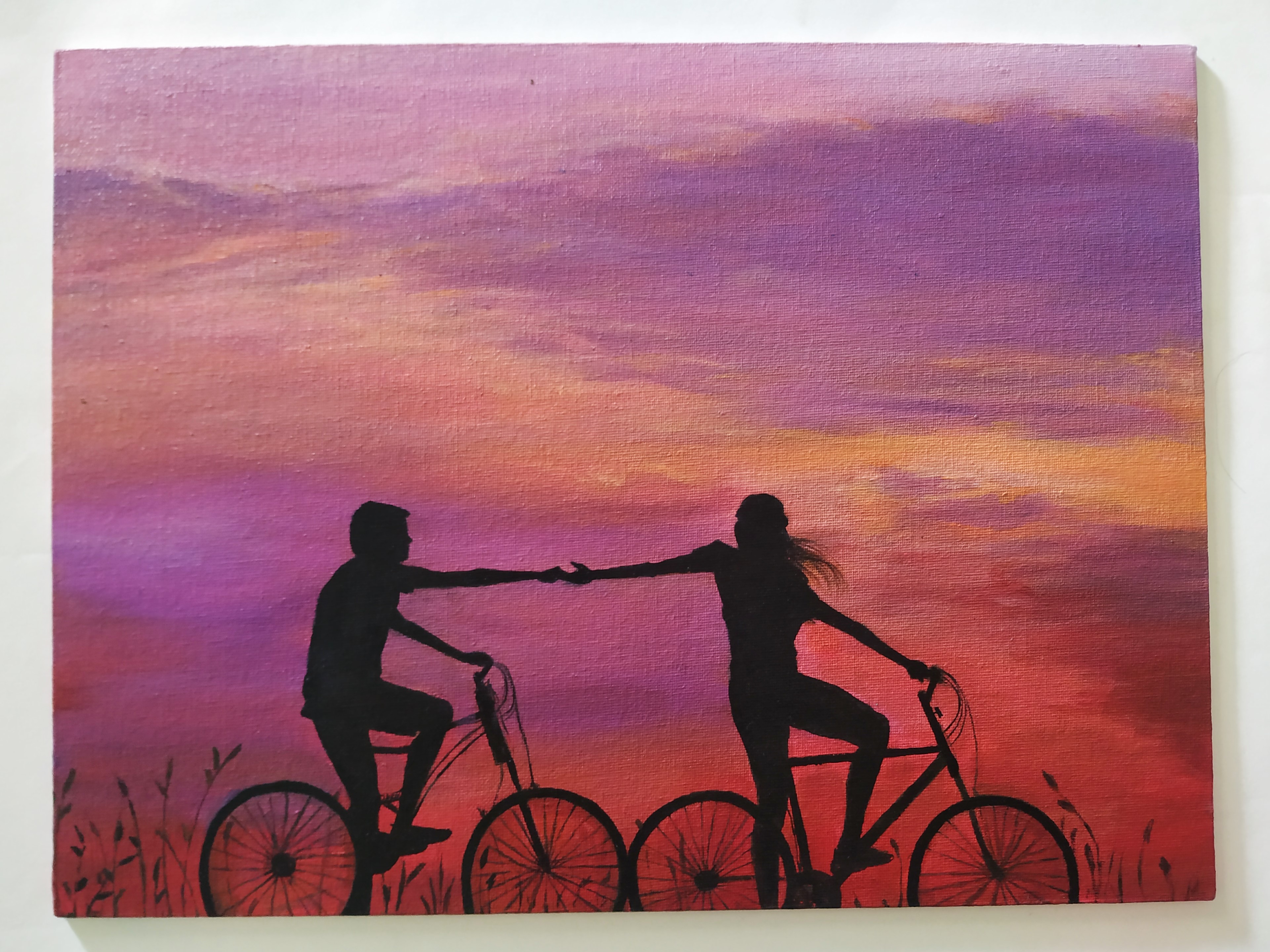 - We are going to paint the canvas with the couple in silhouette and evening sky on the background with Acrylic Colours.