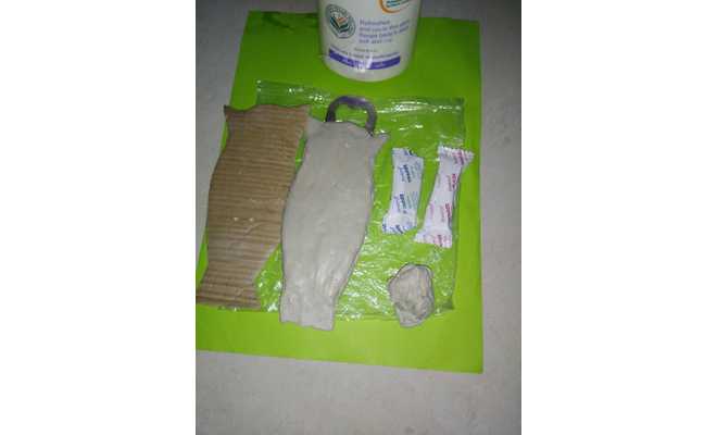 Fevicryl Mouldit(8-10 pkts), Fevicol MR, Steel bottle, Opener, Cardboard, Pencil, Scissors.