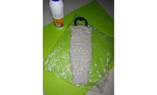 Then mix both the components of Fevicryl Mouldit and apply on the steel side of it according to the shape of the owl. Let it dry completely.