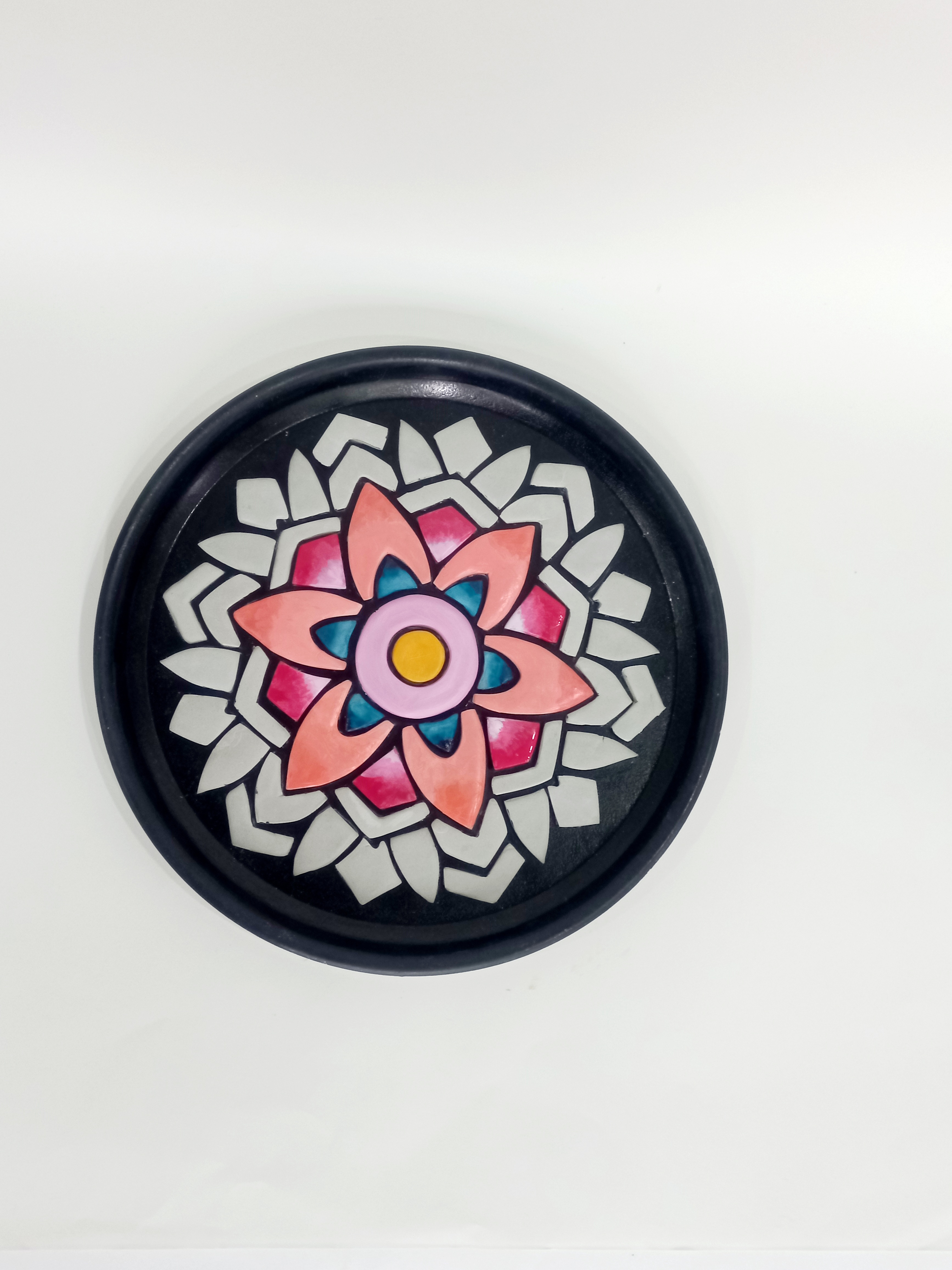 - Your beautifully handcrafted and painted thali is now ready to be displayed as a festive decoration or a unique art piece.