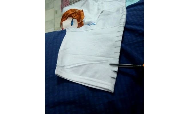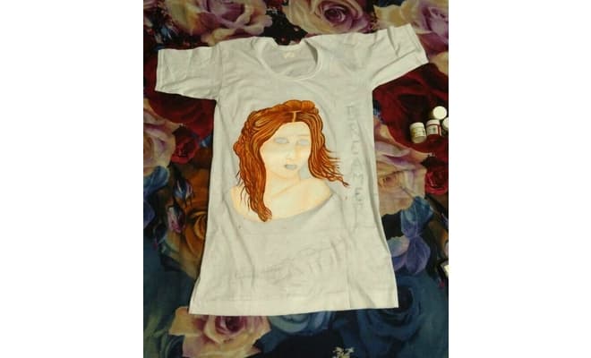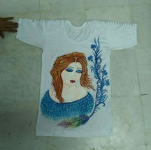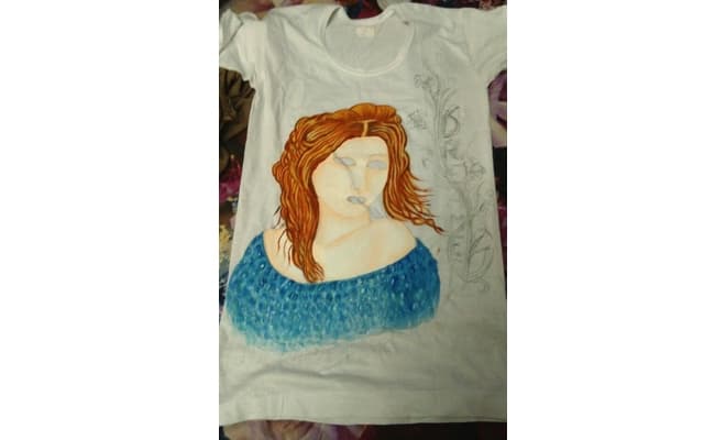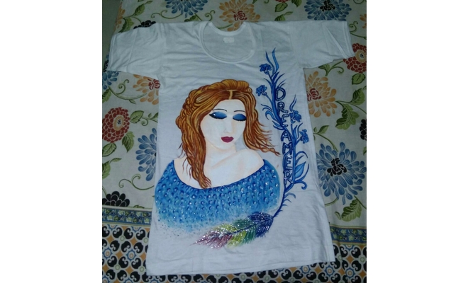In this t-shirt, the painting of a girl with floral and cut design is being made to depict nature as well as a women’s beauty. The cuts in its sleeves are done to give it a more fashionable look.
