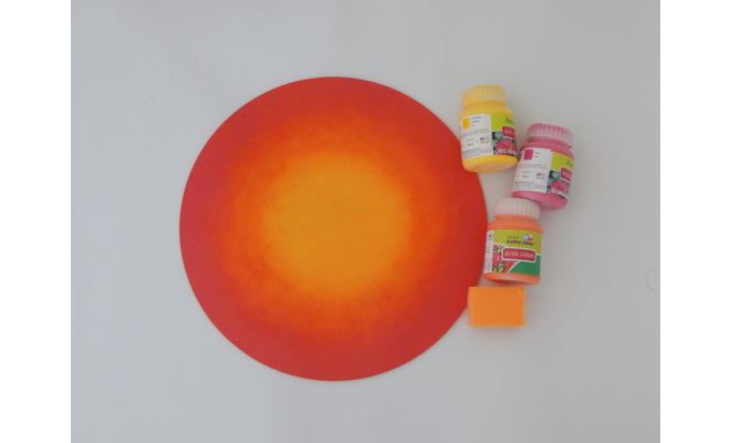 Paint it in a shading manner using Chrome Yellow, Orange and Pink.