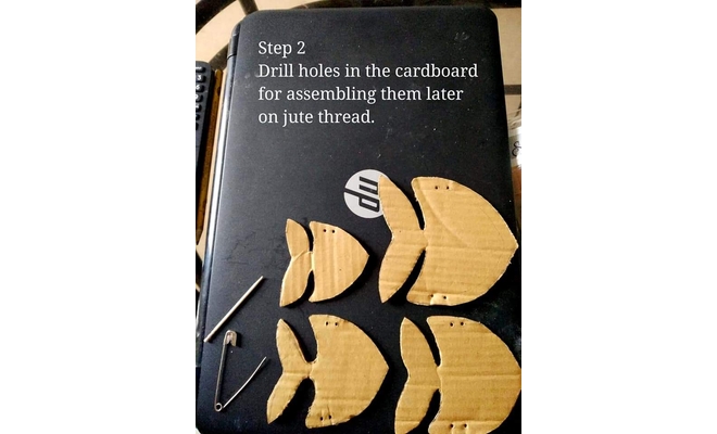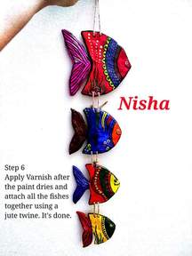 Tie the fishes together using jute thread and apply varnish. Let it dry.