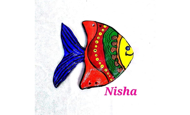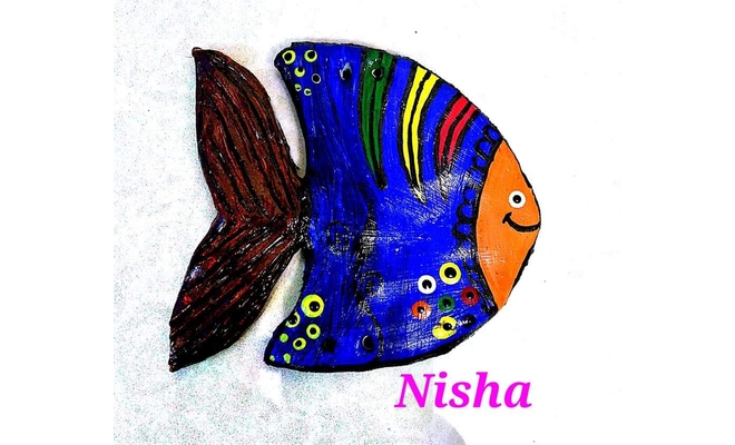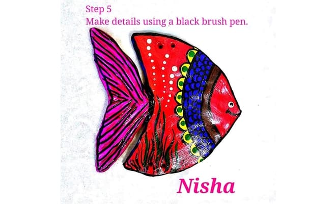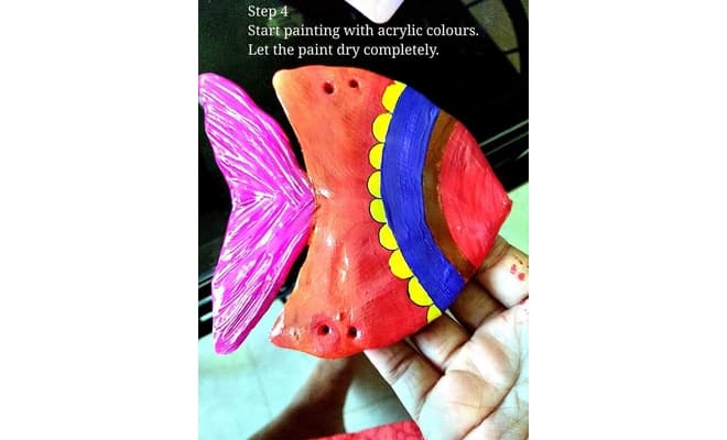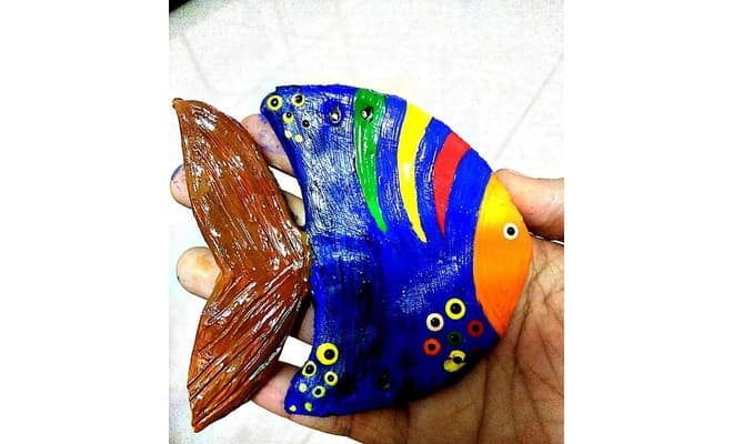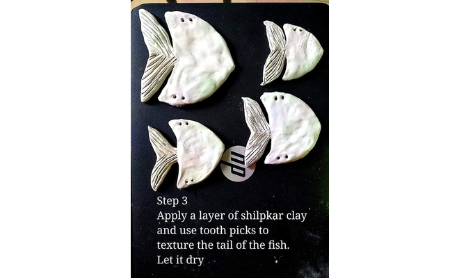 Use Fevicryl Mouldit to give a 3D effect to the fish body. Let it dry