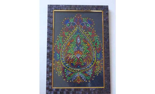 As shown in the picture, I've done painting on glass using Fevicryl 3D Outliners. I'm not sure but it is also called as Kantha Art or thread technique which I've done with the Outliners. (Doted lines). I used this as wall decor in my room. It looks really good.