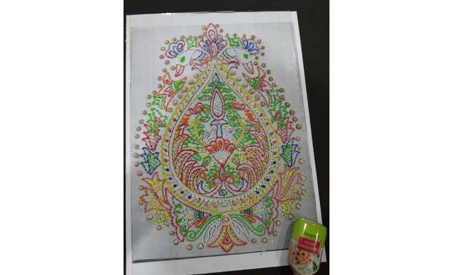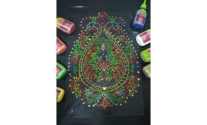 For outside dots here I'm using fevicryl Liquid Embroidery Outliners which gives glitter effect. On white background it will look like this.
