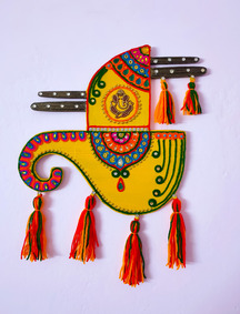 Fevicol MR, Fevicryl Acrylic Colours, Fine Art Brush, Cardboard, Wool, Newspaper tubes, Kundan stone, Hot Glue gun, Scissor.