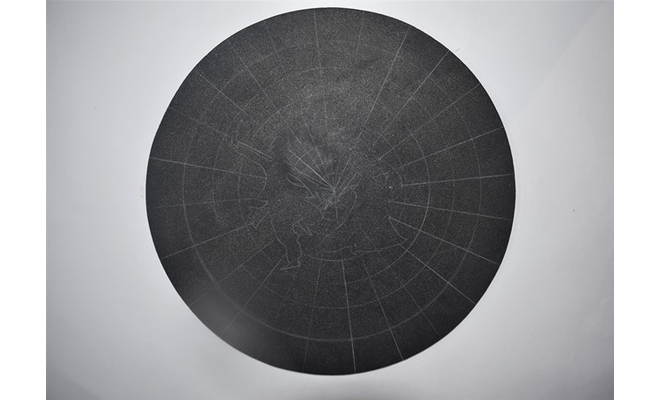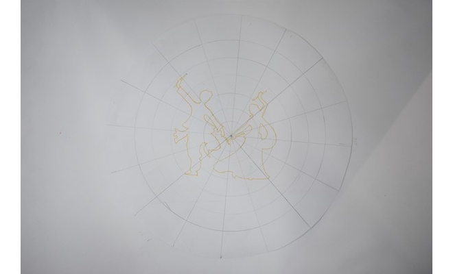 • Trace the radiating circle design with the figures on the painted canvas with white carbon paper.