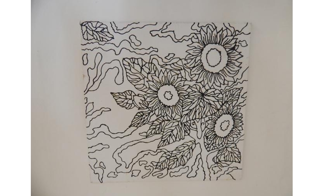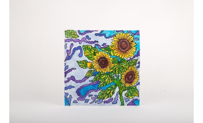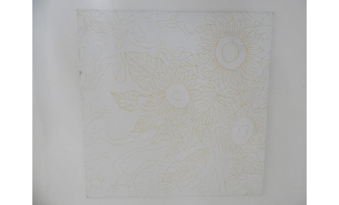 Fevicryl 3D Cone Outliner - Black 708, Fevicryl - Water Based - Glass Colours - Golden Yellow 852, Sea Blue 853, Crystal Green 854, Brown 855, Orange 860, 12” x 12” Sized Fine Art Canvas Board, A3 Sized White Paper, Yellow Carbon Paper, Pencil, Ruler