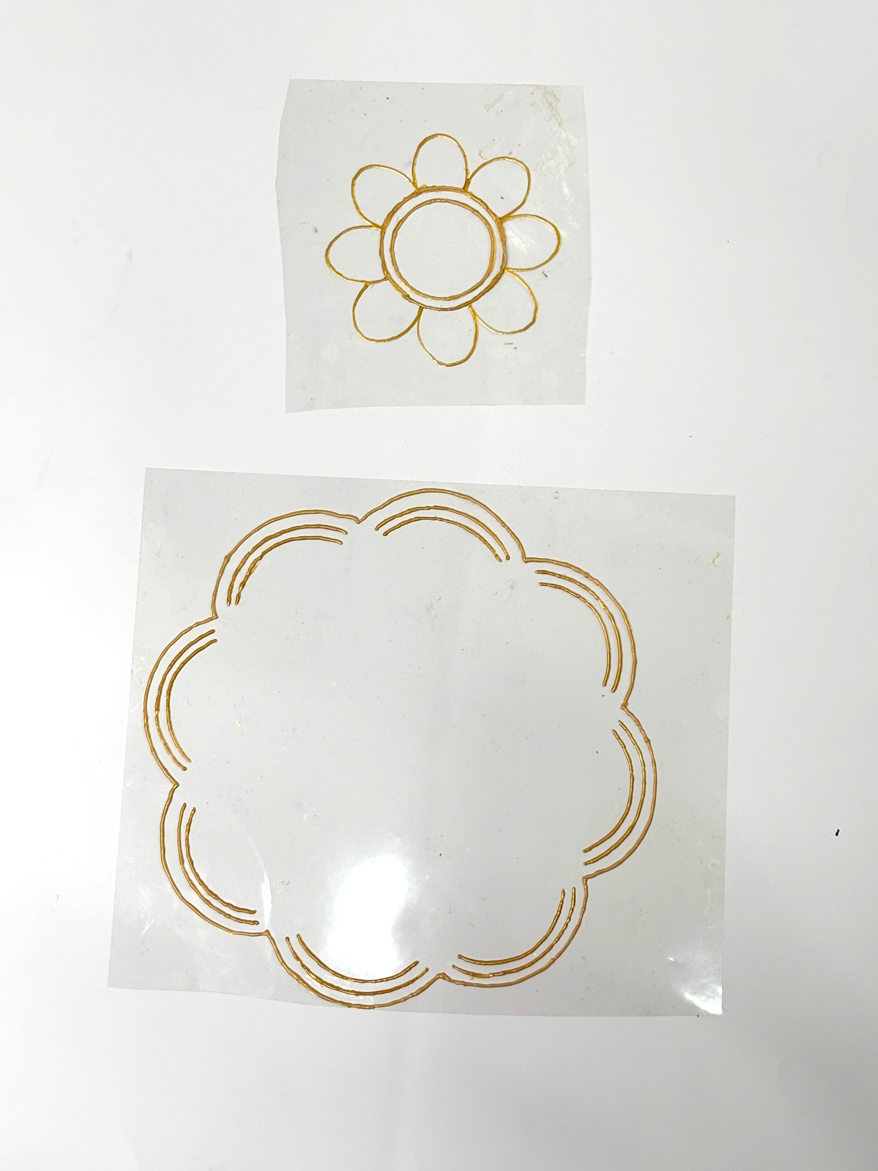 - On a piece of OHP sheet, use a pencil and tracing paper to sketch your rangoli design.