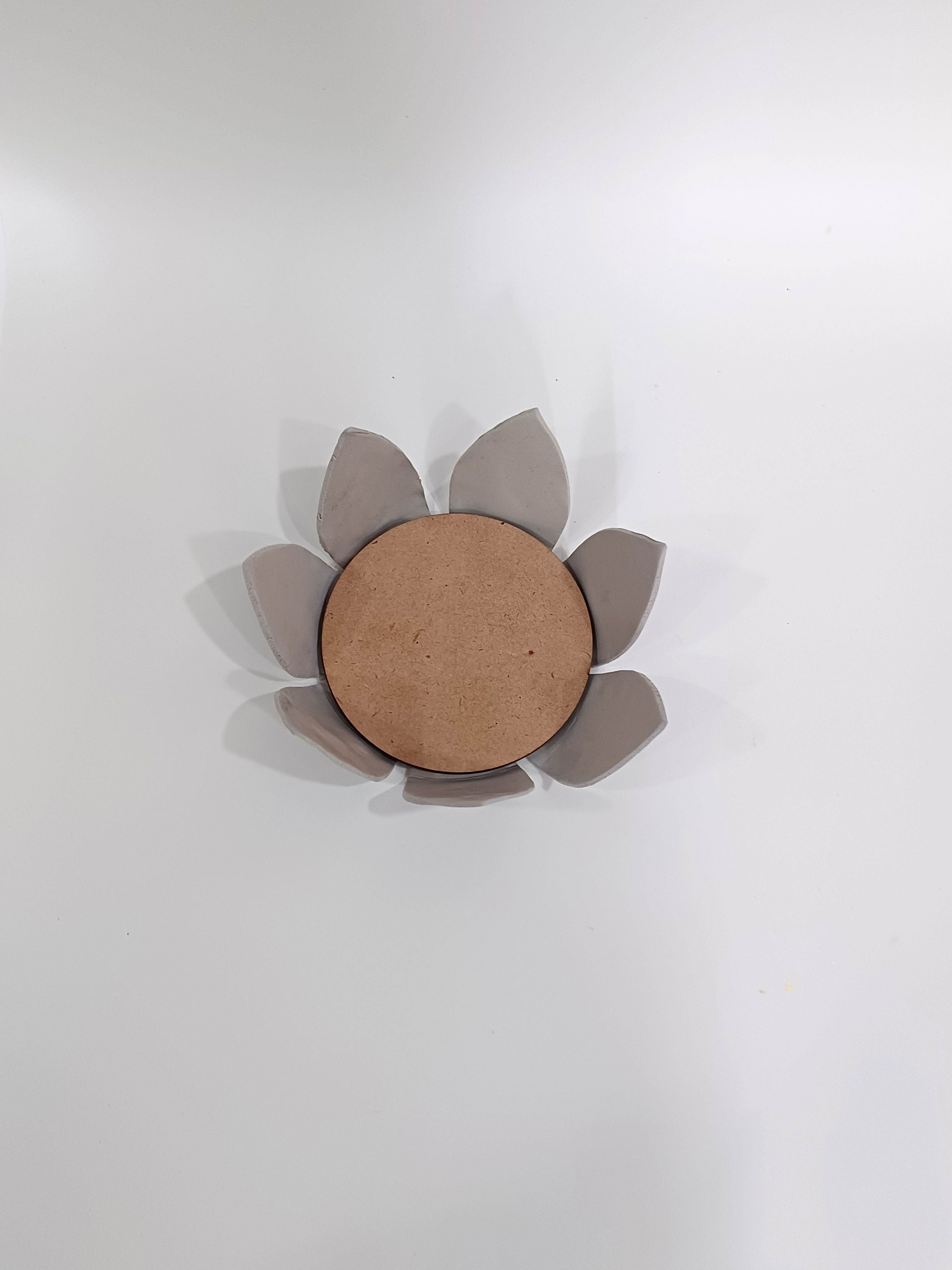 - Place another circular MDF board of the same size on top to hold the petals in place while they dry.