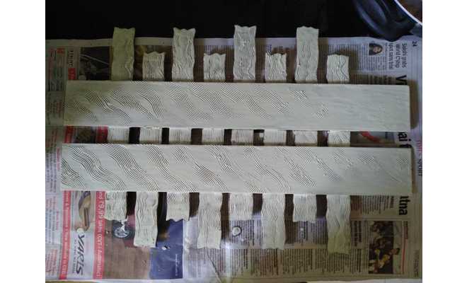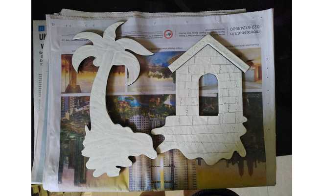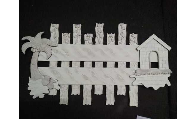 MDF base, Fevicryl Mouldit, Fevicryl Acrylic Colours, White cement, Fevicol MR, Water, Clay tools, Varnish spray