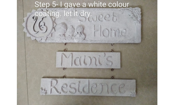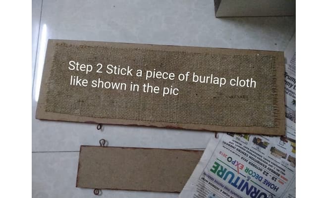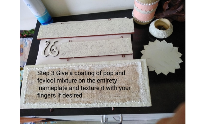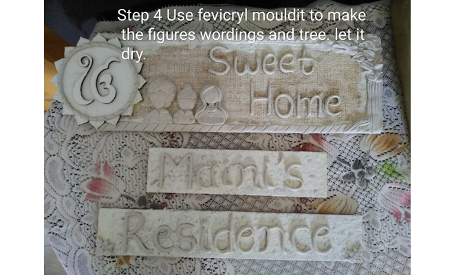 Fevicryl Mouldit, Fevicryl Acrylic Colours, Fevicol, MDF base, Burlap cloth, White cement, Varnish spray