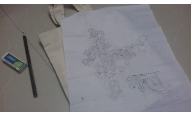 Fevicryl Fabric Colours, Fine Art Brush, Cotton Bag
