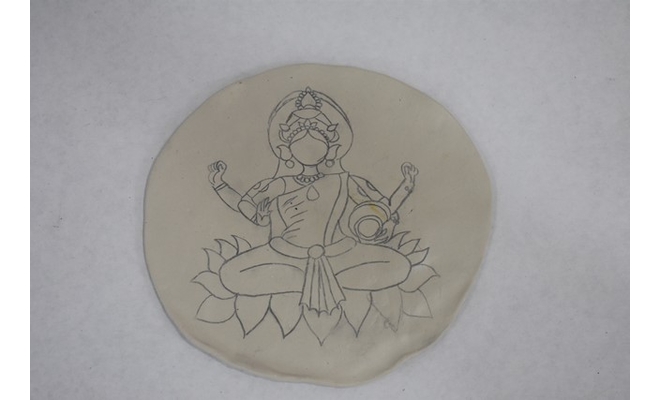 • Trace the outline of the Laxmi on the slab with a carbon paper.