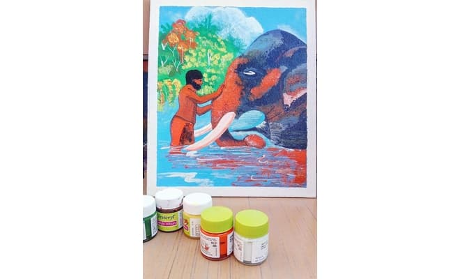 Fevicryl Acrylic Colours, Fine Art Brush, Canvas