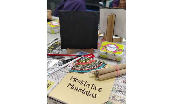 Fevicryl Acrylic Colours, Fine Art Brush, Canvas, White pencil, Compass, Dotting tools (can be anything round).
