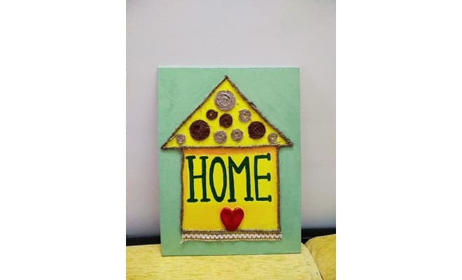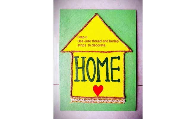 Fevicryl Mouldit, fevicryl Acrylic Colours, Canvas board, Jute twine, Burlap strips, Fevicol MR and varnish spray.