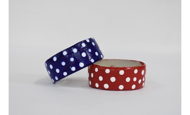 • Paint the polka dots on the rings with Acrylic Colour White 27.