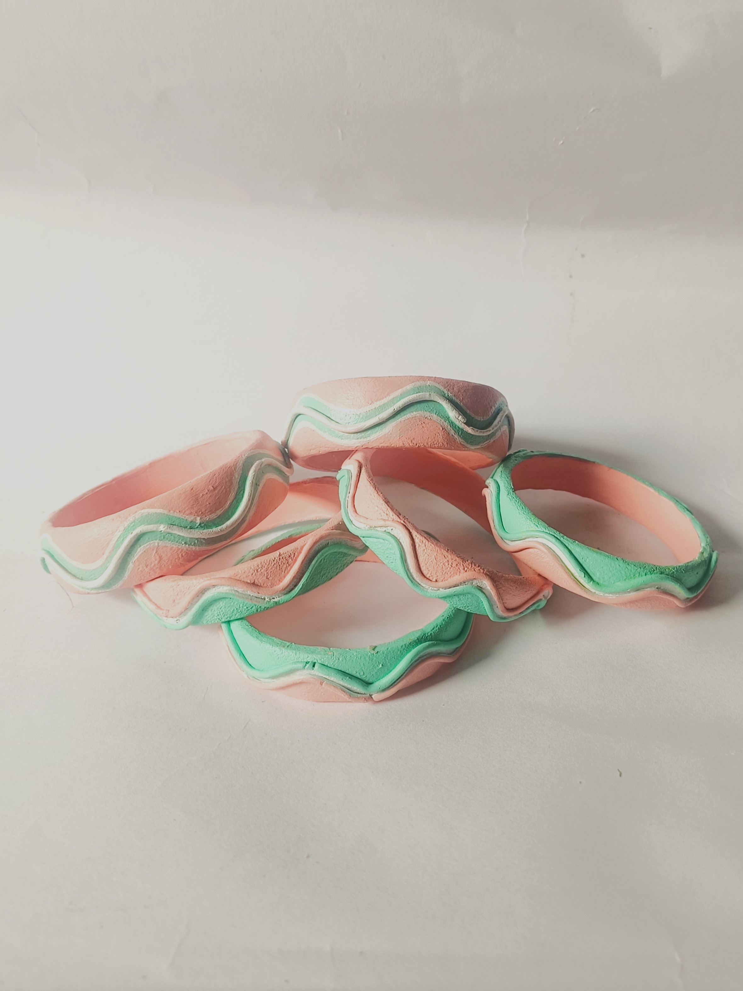 Create elegant handcrafted bangles using Mouldit clay, pastel acrylic paints, and ornamental stones. This easy 4-step project guides you through mixing clay, shaping and decorating with coils, painting in soft pastel tones, and enhancing with sparkling embellishments for a stylish, personalized accessory.